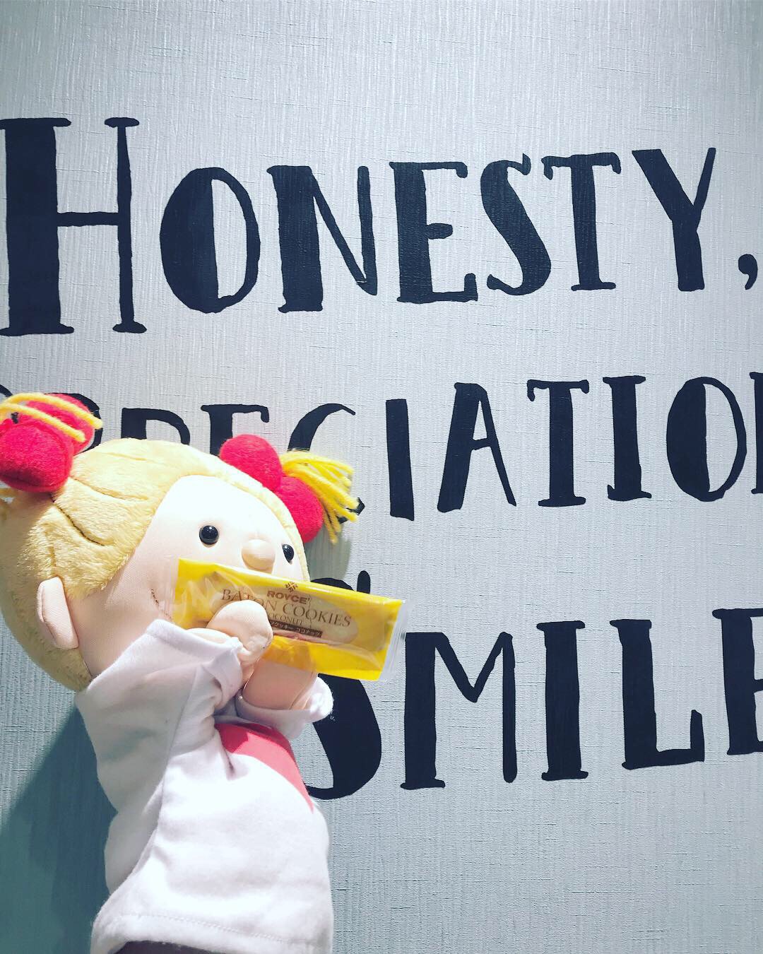 患者さんからいただいたお菓子とお子様用のパペットと撮影してみました😁差し入れ、ありがとうございました!
