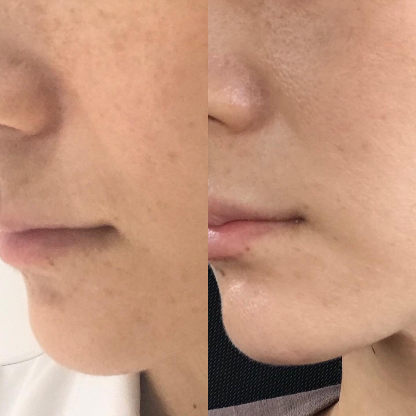 今回のセミナー時の写真ではありませんが、実際に法令線へヒアルロン酸注入した場合の比較写真はこちらになります📷
