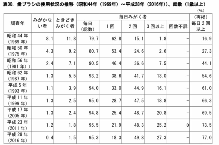 1日の汚れを寝る前の歯磨きで落とし、寝ている間に増えた細菌を朝の歯磨きで落とす!年々習慣づいてきたというデータですね。
