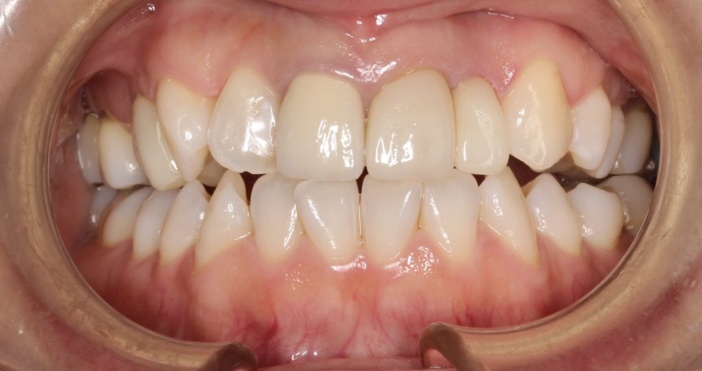 この症例は前歯の歯並びもセラミック補綴で治しているので、ちょっとした『セラミック矯正』にもなっています。