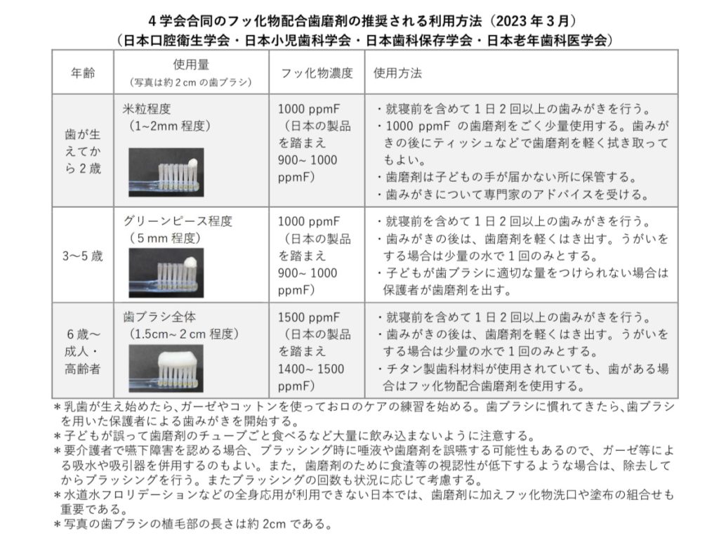 『歯磨き剤の量はどれくらいが良いのか?』皆さん、どうしていますか?2023.1月に「フッ化物配合歯磨剤の推奨される利用方法について」4つの歯科学会が合同で提言がしました。