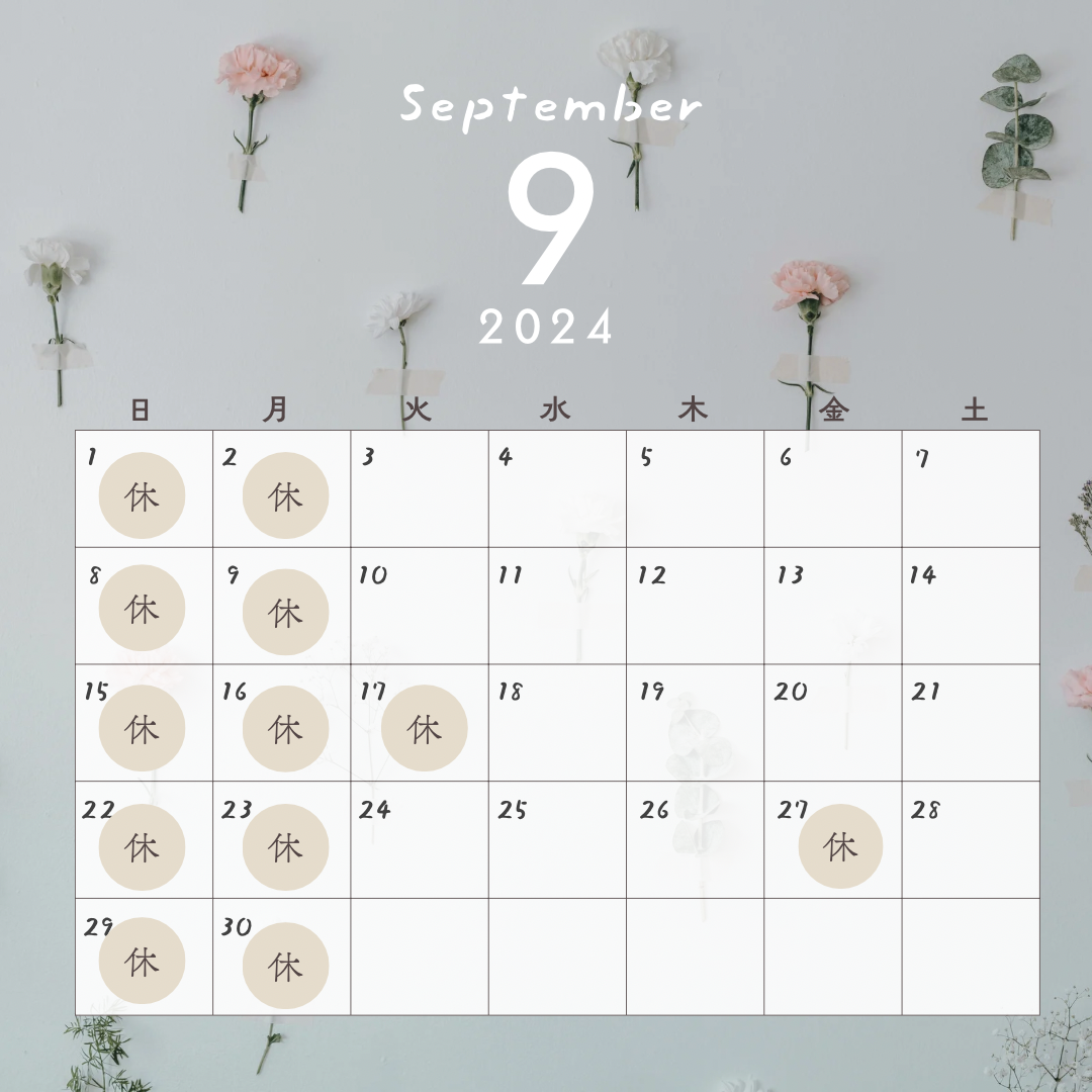 今月は振替休日が2日あります。よろしくお願い致します。