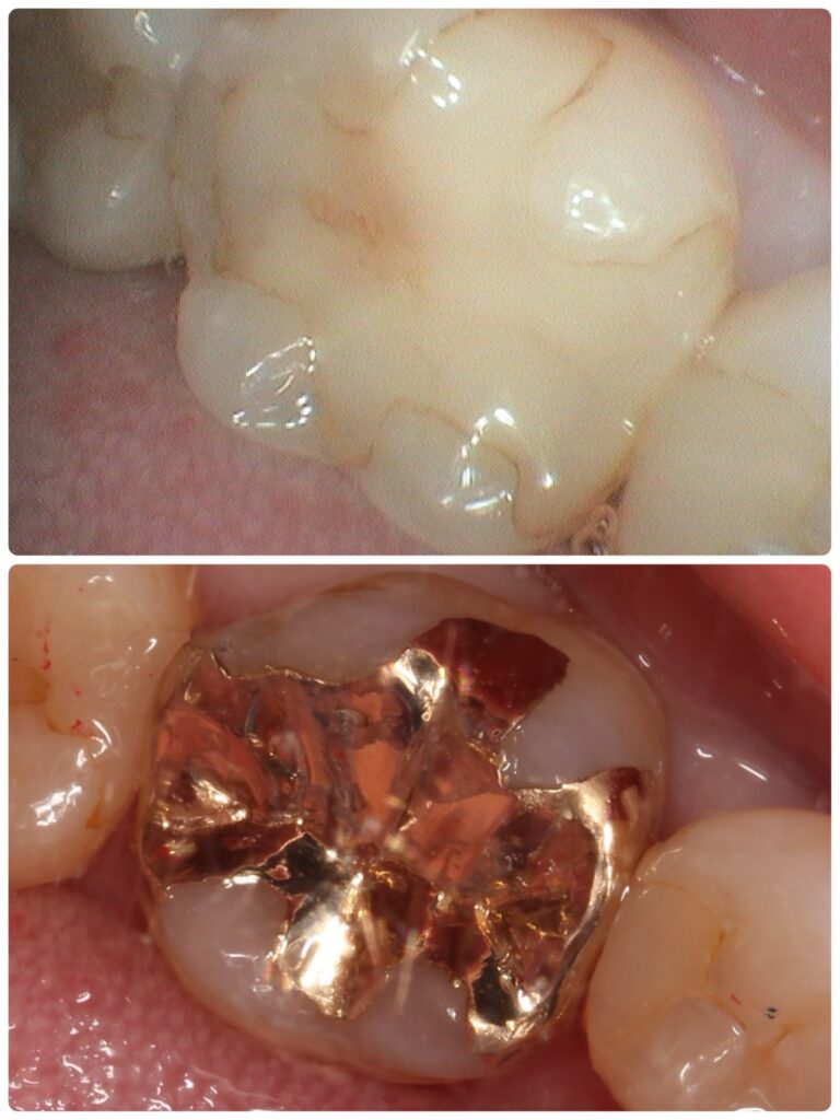 ゴールドは柔らかく延びのある金属です。そのため、歯との適合精度が非常に高く、すき間ができにくいのが特徴。二次むし歯のリスクが低く、10年、20年と使い続けられる症例も珍しくありません。