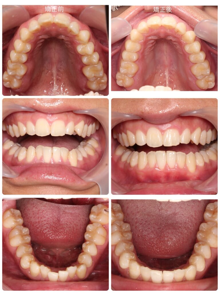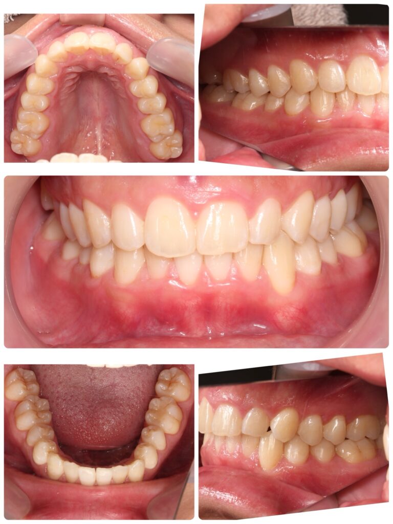 治療のポイントとしては、主訴の前歯の叢生(ガタガタ)の改善、咬み合わせの安定はもちろんですが、無理のないスケジュール設計を心掛けました。