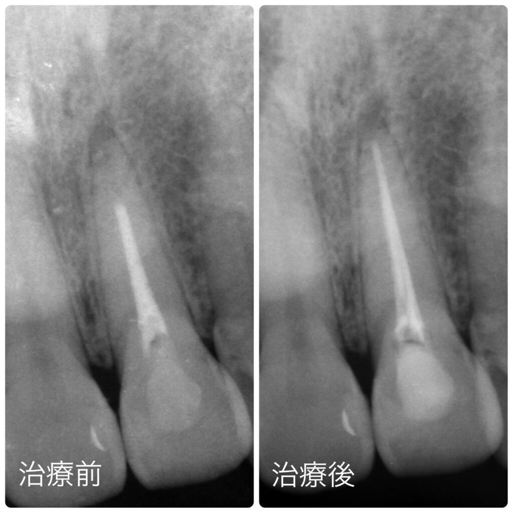 レントゲンで確認したところ、他院での過去の根の治療が不十分だったため、再根管治療を行いました。